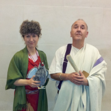 Caroline Lawrence is een Britse auteur die veel kinderboeken over het oude Rome heeft geschreven, maar ook over het Amerikaanse Wilde Westen en het oude Griekenland. Ze is gek op geschiedenis, films, Londen en schrijven. In 2009 won ze de Classical Association Prize omdat ze er met haar boeken voor zorgt dat kinderen de Klassieke Oudheid beter begrijpen. Ze schrijft ook de serie Time Travelers, waarin de hoofdpersoon een spannende tijdreis naar het verleden maakt en zich aan strenge regels moet houden om dat te overleven.