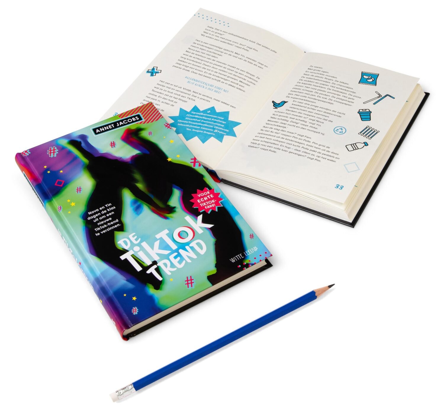 Nieuw TikTok-avontuur voor iedereen die dol is op dansvideo’s en trends. Annet Jacobs kwam op het idee voor dit boek door een schoolklas, die graag een boek wilden lezen over een belangrijk thema: vervuiling van de natuur en hoe kinderen daar iets aan kunnen doen.