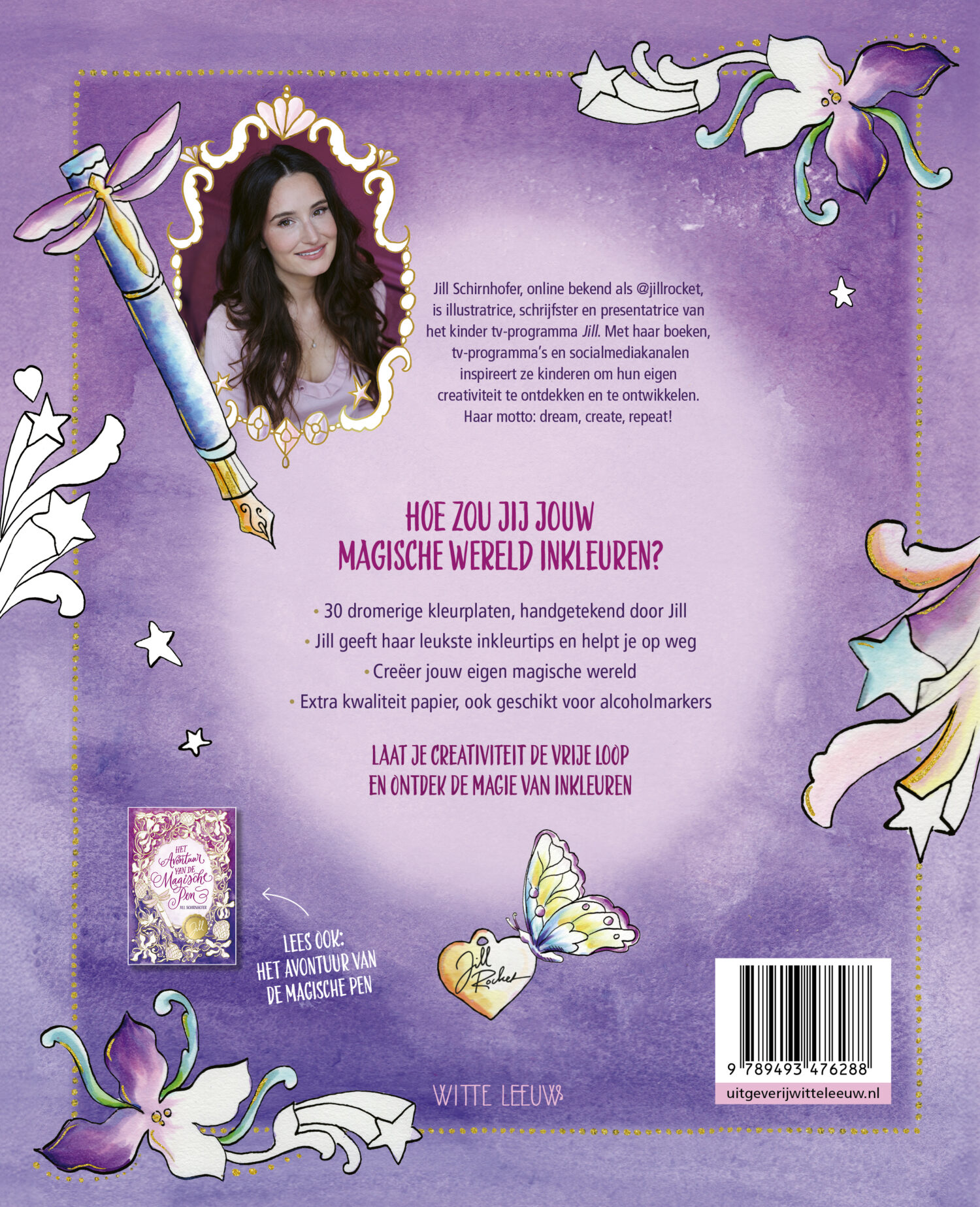 Hou zou jij jouw magische wereld inkleuren? Kom erachter met Het magische kleurboek, vol met kleurplaten handgetekend door Jill. Inclusief uitvouwbaar omslag met handige tips & tricks van Jill!