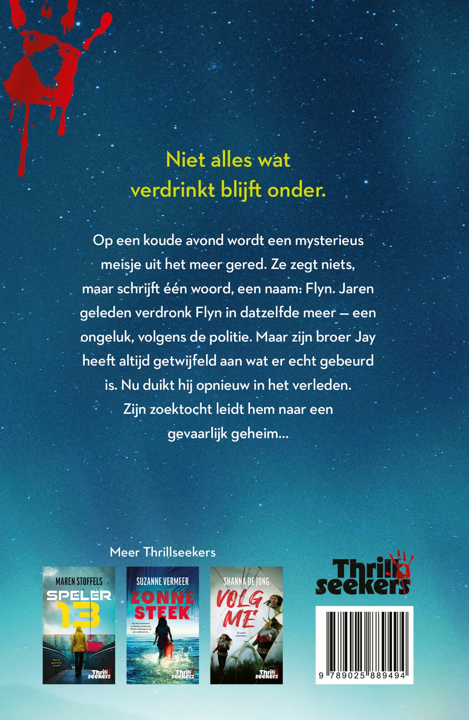 In Het meisje in het meer , het nieuwe boek binnen de Thrillseekers-reeks, geschreven door Pamela Sharon, wordt op een koude avond een mysterieus meisje uit het meer gered. Ze zegt niets, maar schrijft één woord, een naam: Flyn. Jaren geleden verdronk Flyn in datzelfde meer — een ongeluk, volgens de politie. Maar zijn broer Jay heeft altijd getwijfeld over wat er echt gebeurd is. Nu duikt hij opnieuw in het verleden. Zijn zoektocht leidt hem naar een gevaarlijk geheim…