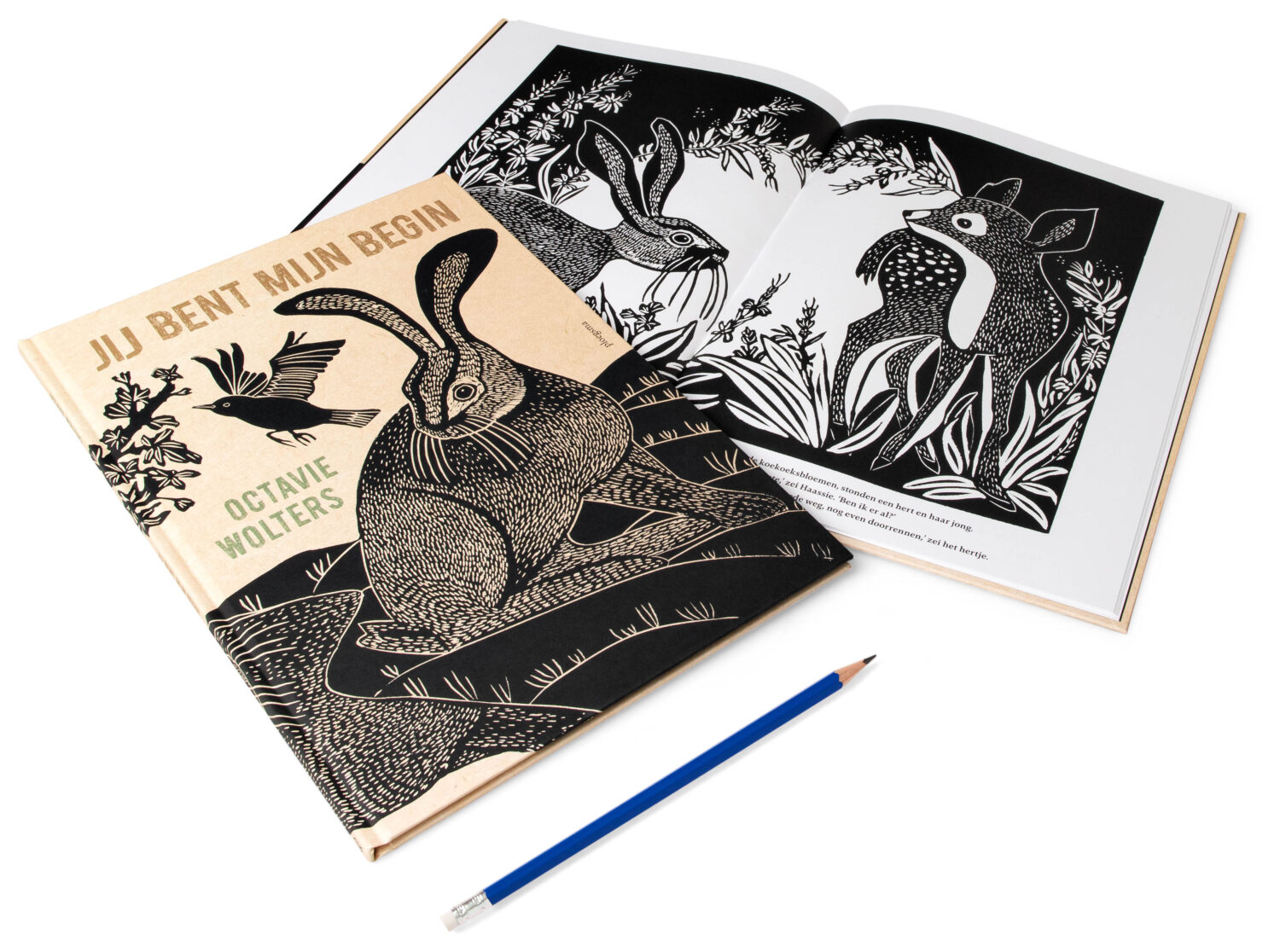 Jij bent mijn begin is een ontroerend verhaal voor alle leeftijden met prachtige linosnedes van de prijswinnende schrijver en illustrator Octavie Wolters.