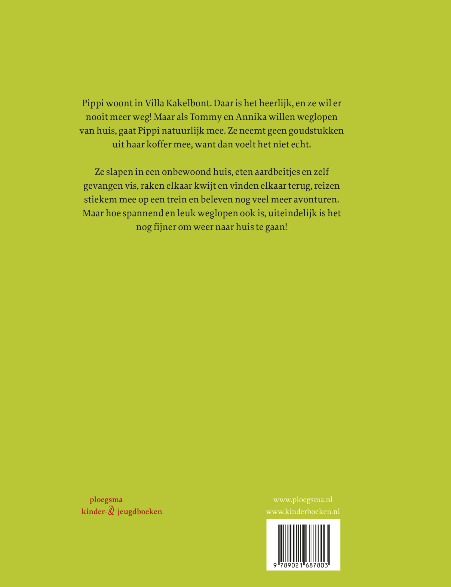Pippi woont in Villa Kakelbont. Daar is het heerlijk, en ze wil er nooit meer weg! Maar als Tommy en Annika willen weglopen van huis, gaat Pippi natuurlijk mee. Ze neemt geen goudstukken uit haar koffer mee, want dan voelt het niet echt.