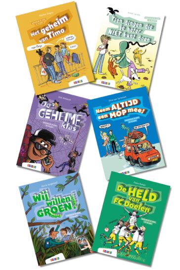 Pakket met zes verschillende leesboeken op AVI M4 in de serie ‘Makkelijk & Leuk’.