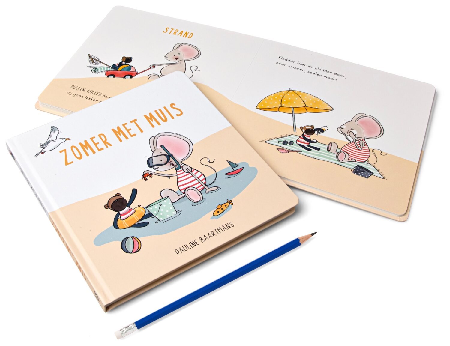 Zomer met Muis is een heerlijk voorleesboek op rijm van Pauline Baartmans, waarin Muis en Beer zomerse en herkenbare avonturen beleven.