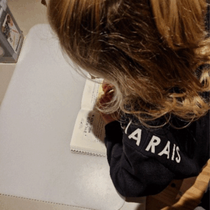 We weten nu wie de moordenaar is, ik voelde me een echte detective! Soms zat ik op het verkeerde spoor, we kwamen ook een keer bij een doodshoofd dus toen moesten we weer verder speuren. Veel puzzels waren makkelijk maar sommige ook wel moeilijk dus ik heb een stuk samen met mama gedaan (niet doorvertellen, maar die had het soms ook mis). De leukste puzzel van het hele boek was zeker die met de scherven om de portfles te vinden! We hebben nergens bij de oplossingen gekeken, je kunt heus zonder spieken de moordenaar vinden.